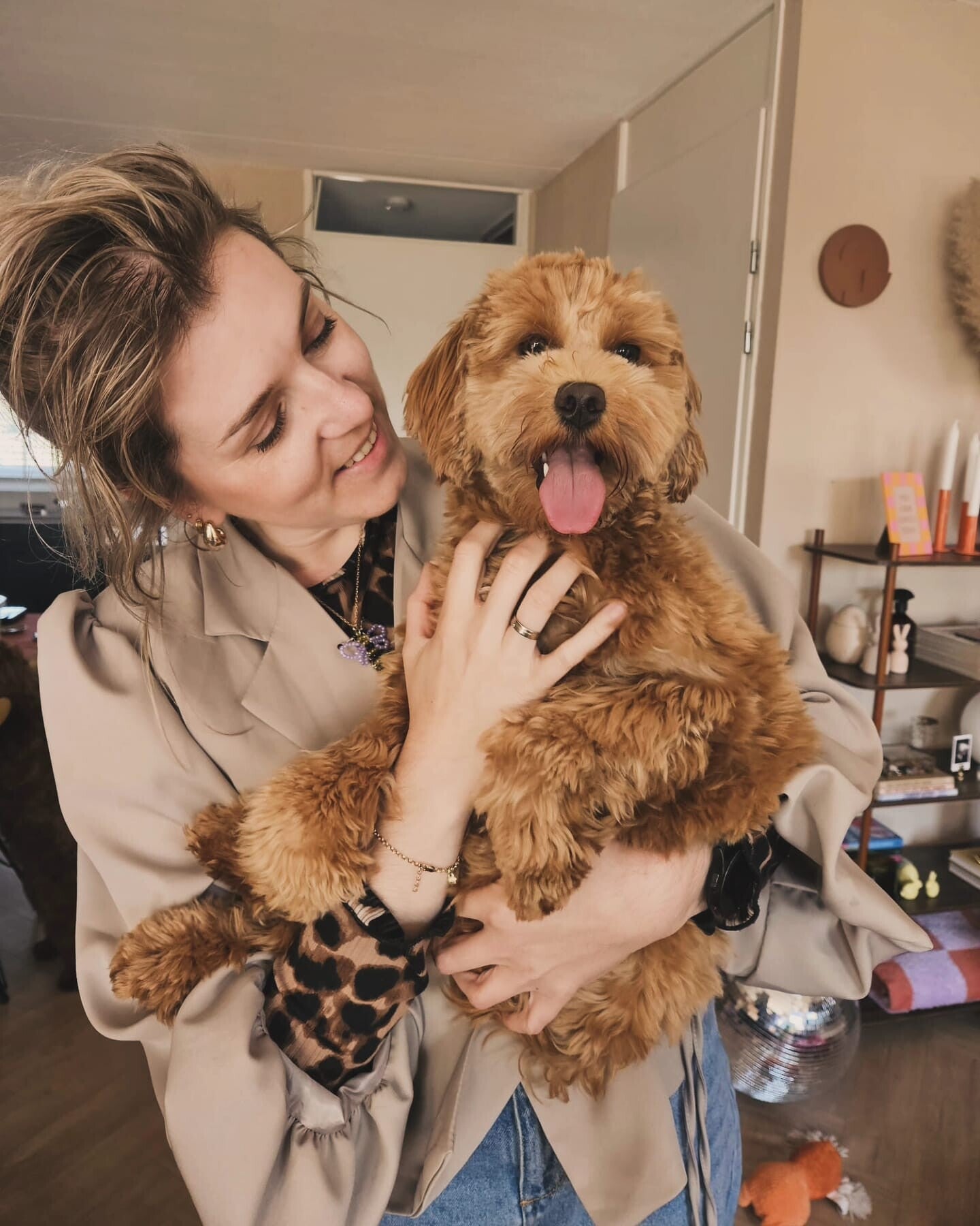 Ik ben Jantine, en samen met mijn mini doodle Moos begon het avontuur dat uitgroeide tot mijn eigen merk Kwispel & Krul.