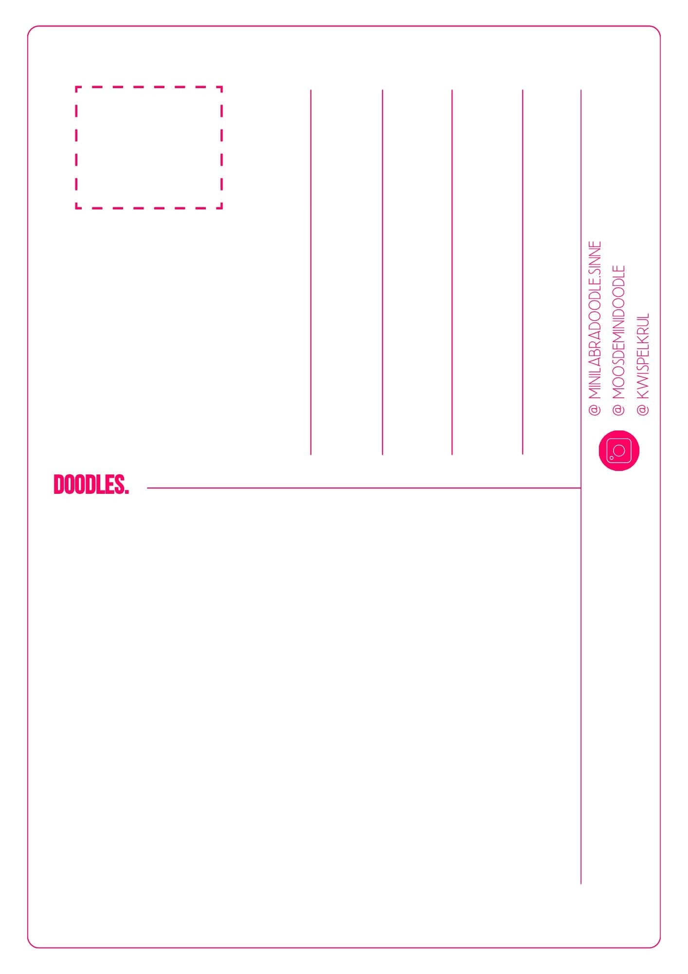 Uiteraard helemaal in DOODLES. style. Met deze kleurrijke en vrolijke postcards vind je altijd wel een gelegenheid om iemand blij te maken. En hoe leuk is het om in dit digitale tijdperk een leuk kaartje te ontvangen die ook nog eens heel stylish in je interieur staat? Uiteraard is het ook geoorloofd om deze voor jezelf te kopen, als echte doodle-mom mag alles!