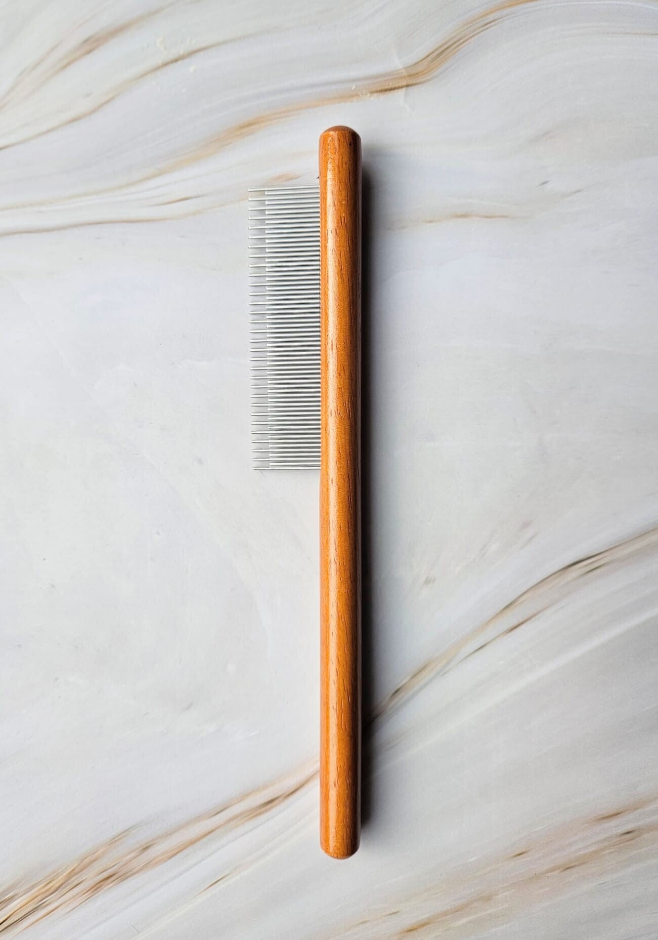 Deze compacte detailkam is speciaal ontworpen voor de meest gevoelige gebieden van je hond, zoals de oogjes, oortjes, snuit en andere kleine zones. Door de combinatie van kortere en langere kamtanden kun je zowel oppervlakkig als dieper door de vacht heen werken, zonder te trekken of irritatie te veroorzaken.